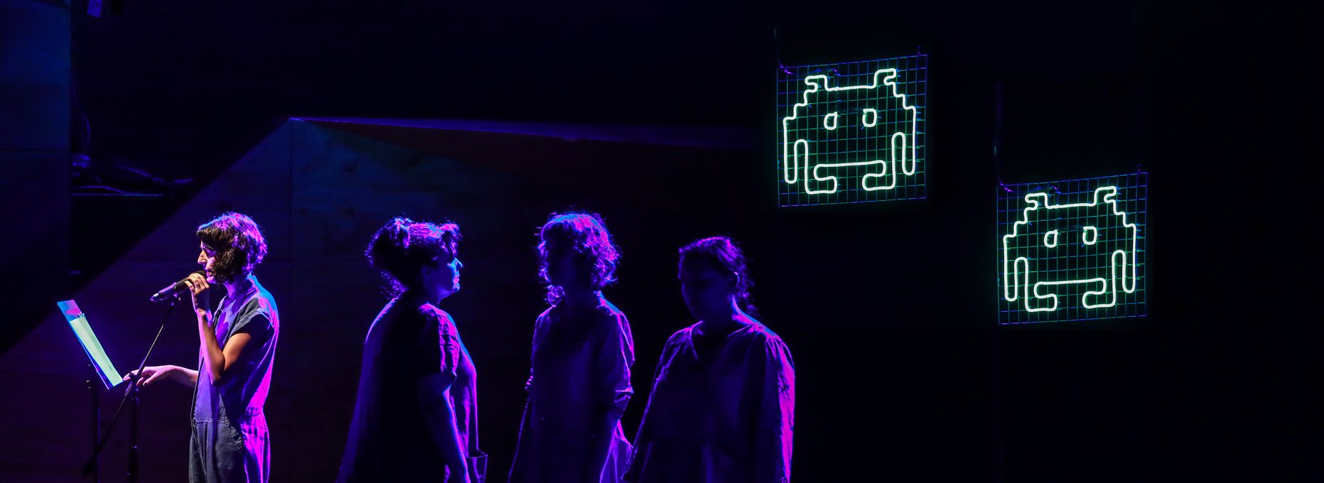 “Por otro lado, Nona Fernández, hace hincapié en las diferencias de su libro con la adaptación de Space Invaders y lo que verá el público en los escenarios: “Ha sido un desafío jugar con este material literario y darle cuerpo. Principalmente porque es un libro escrito con hilos de aire, muy etéreo, lleno de literatura, sueños y recuerdos, muy poco concreto. El escenario es pura materialidad entonces el teatro le ha dado carne y cuerpo a la historia del libro, además de proponer estrategias de relato y escenas que tienen que ver con la lectura de esta historia desde el hoy. El libro tiene 10 años desde que fue escrito, revisitar su historia nos obliga a releer desde un nuevo filtro. El filtro de un Chile en pleno proceso constituyente, un Chile que se abre camino desde el feminismo y la revuelta social””
