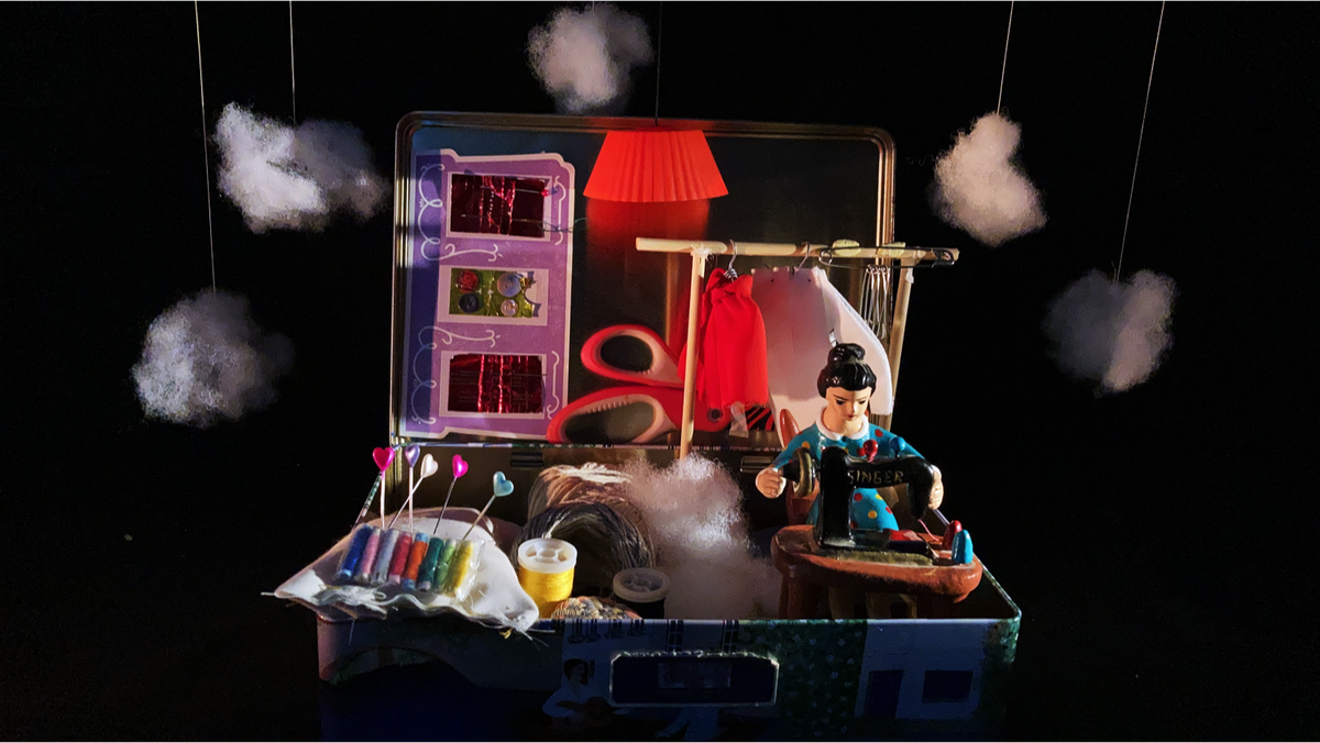 Paula Barraza, La Mona Ilustre: En La Mona Ilustre trabajamos mucho en grupo, con objetos, con marionetas, es un trabajo muy colectivo y de manipulación, siempre está presente el objeto, el cachureo, porque trabajamos con una imagen narradora, o sea, en el fondo contamos con todos los elementos que hay en la imagen, con la música, luz, los objetos. Resulta que llegó la pandemia y nosotros no habíamos tenido ninguna función, nada, y me puse a pensar qué se podía hacer con cosas que tuviera en la casa, cómo podía seguir trabajando, y en ese momento me di cuenta de que yo colecciono artesanías y cosas así, y traté de moverlas, pero claro, nosotros movemos una marioneta entre tres personas, no entre una, entonces faltaban manos, y ahí empiezo a ver que podía moverla y sacarle la foto, y empiezo a cachar que se podía hacer algo con stop motion.