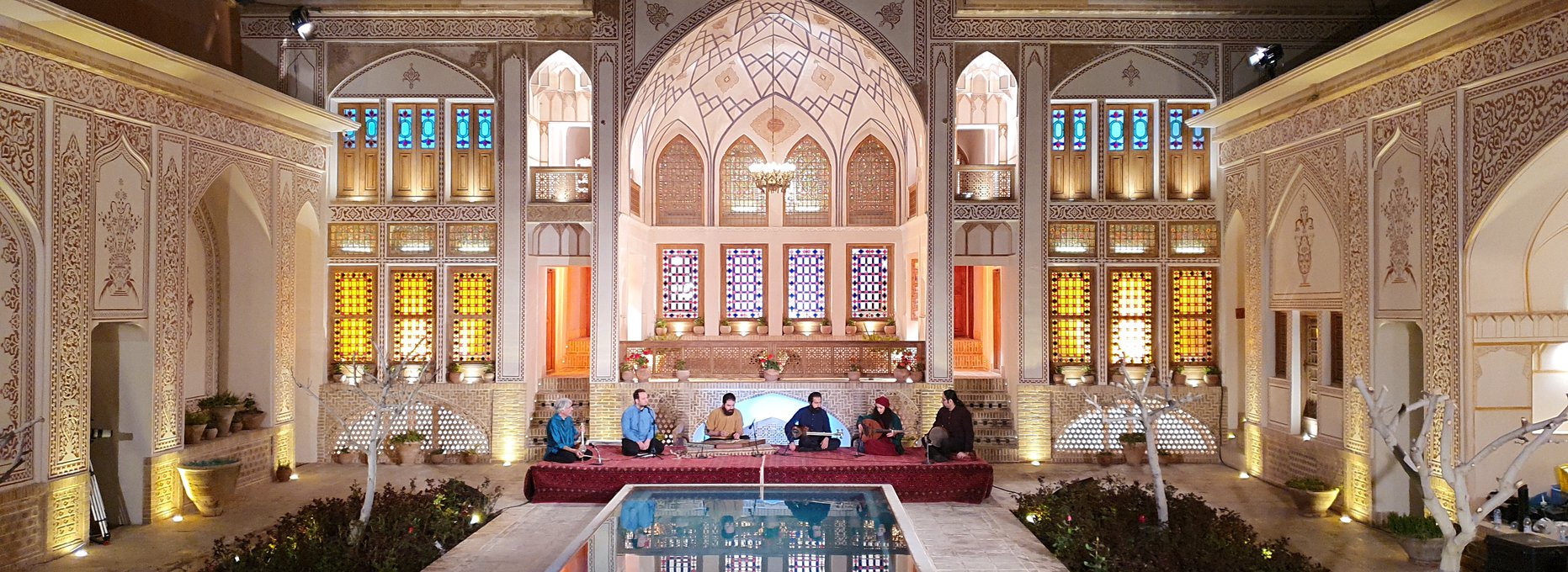 La locación de este recital también es muy especial. El concierto se lleva a cabo en el sublime Palacio Mahinistan, que tiene una arquitectura de 200 años de antigüedad, emplazado en Kashan, una antigua ciudad del desierto y un importante punto de parada en el camino de la seda, que está llena de historia.
