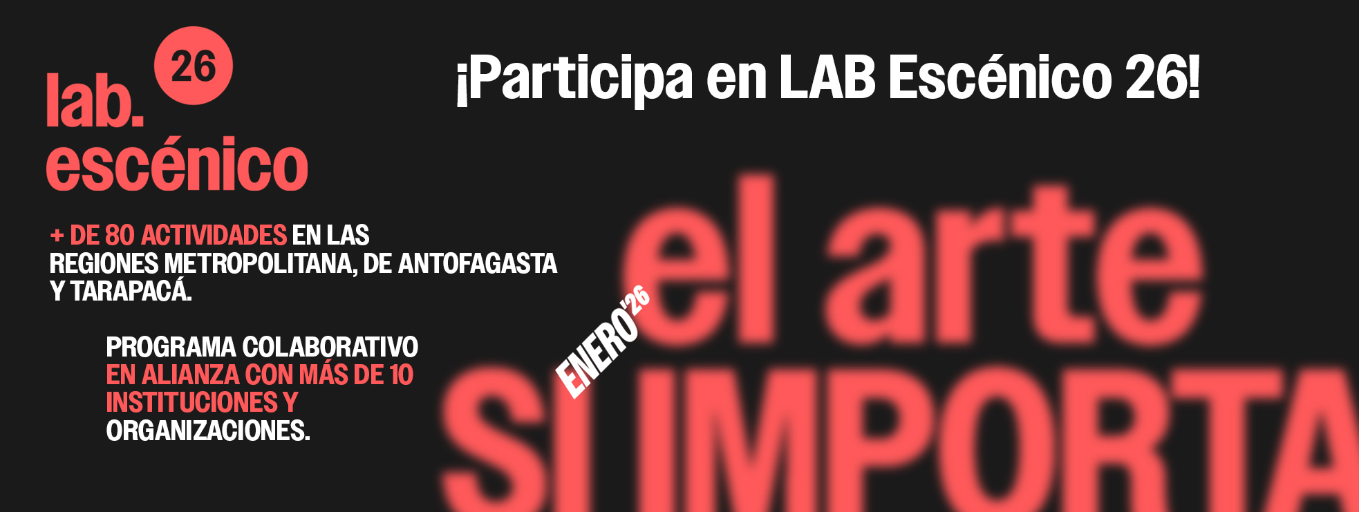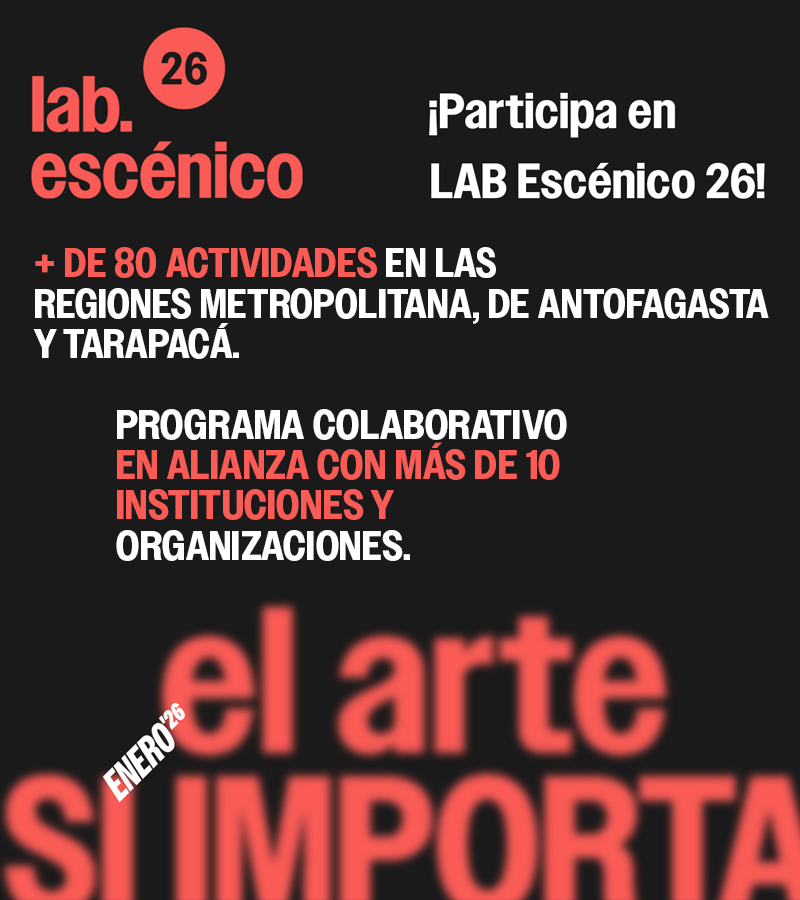 Te invitamos a ser parte de la experiencia de LAB Escénico 2026, a compartir inquietudes y aprendizajes sobre este, el pulso vital de la existencia, y a demostrar que hoy más que nunca el arte ¡sí importa!