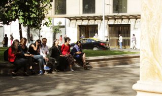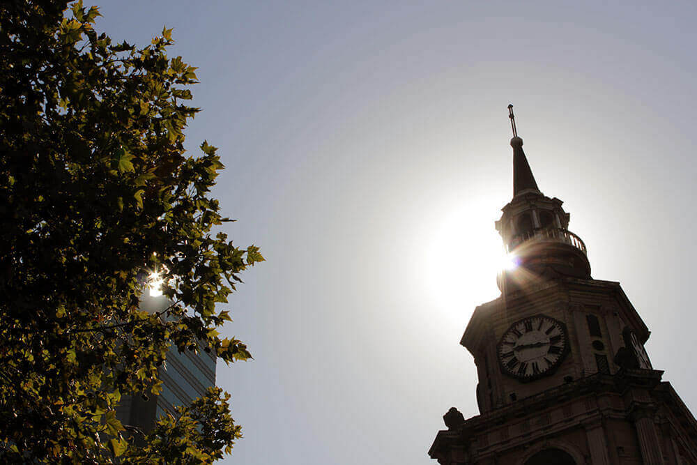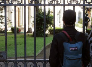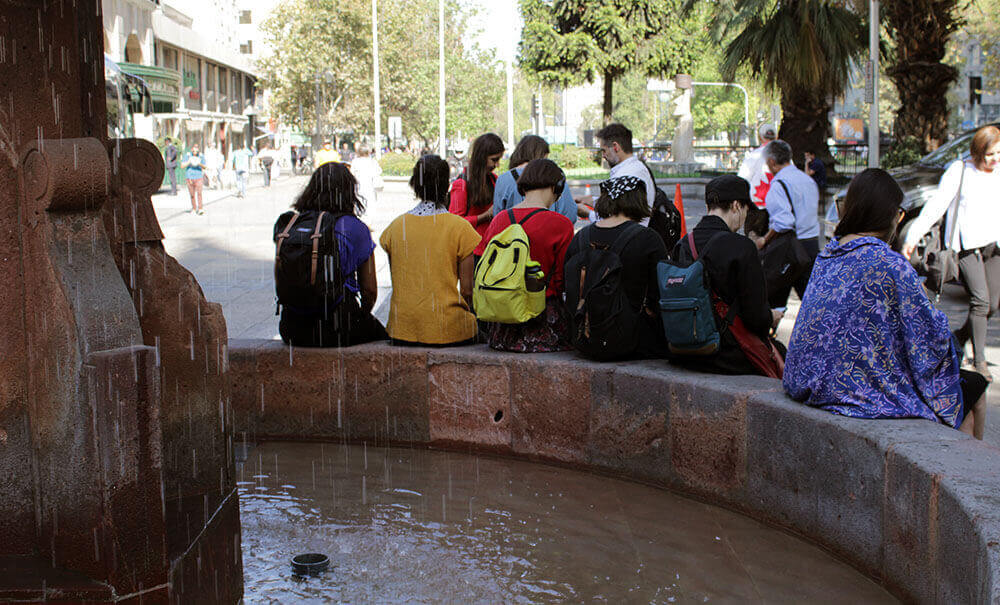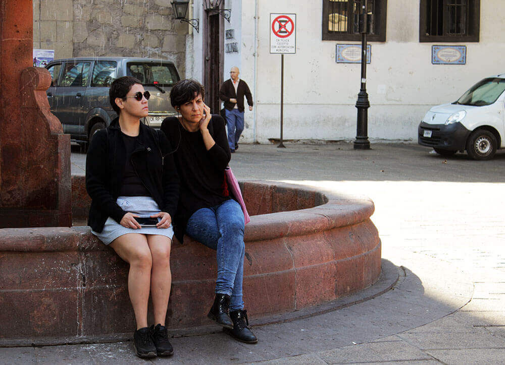 Mauricio Barría, uno de los investigadores de App Recuerdos, nos explica que la siguiente y última parada está más alejada. Se trata de la Iglesia San Francisco, donde escucharemos Un 8 de marzo, un relato que estremece por la violencia y abuso que sufrió su protagonista. Sentadas en la pileta del lugar, las participantes reflexionan sobre el testimonio que acaban de escuchar y luego comienzan a despedirse. “La experiencia es un ejercicio bastante conmovedor, removedor, de reconstruir el paisaje histórico de los sucesos, de la experiencia de personas durante la dictadura”, explica Katia, bailarina de 26 años al finalizar el recorrido. “Es un dispositivo que te sensibiliza en la acción de ir caminando por una ciudad que sigue siendo la misma, pero no”.