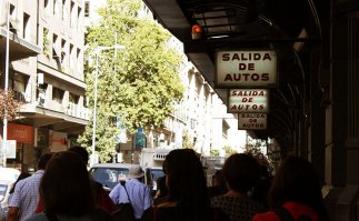 Minutos más tarde, y luego que todo el grupo caminara hasta la esquina de Compañía con Ahumada para escuchar la historia Un fatal encuentro clandestino –a sólo metros de la entrega de flores a manos de modelos masculinos –; nos dirigimos hasta el ex Congreso. La voz femenina de AppRecuerdos nos pide que nos sentemos en una de las paredes que rodean el recinto, para revisar el episodio que tuvo a 60 mujeres y tres hombres encadenados y reclamando por sus familiares, detenidos desaparecidos.