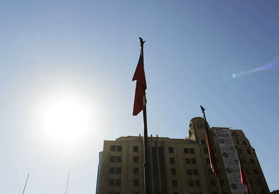 Las siguiente dos paradas suceden alrededor de la Plaza de la Constitución y el Palacio de La Moneda: el primero de ellos, Allanamiento, cuenta sobre la experiencia de una familia que vivía al frente del lugar, y cada vez que Pinochet hacía un acto, recibía la visita –non grata– de las fuerzas policiales. Entre tanto edificio donde trabaja tanta institución pública, cuesta pensar en ese sector como un lugar tranquilo para vivir.