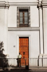 La ruta continúa por Paseo Ahumada, luego por Huérfanos a la izquierda, hasta llegar a la esquina con Estado. “Con fusil o sin fusil, Cristo vencerá” se escucha decir en el audio relatado por Tania Medalla, quien recuerda un suceso protagonizado por su madre embarazada de 8 meses versus carabineros que tomaban presos a protestantes. Coincidencia o no, en el lugar somos observadas por dos carabineros que vigilan el sector.