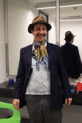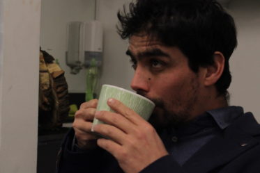 Lascar y Pavez comienzan por cambiar su vestuario, la caracterización de Parra es sencilla. Una camisa, un chaleco y el vestón final. La tenida se completa con un pañuelo en el cuello, un gorro y finalmente cambia las zapatillas deportivas por unos zapatos antiguos color café. Faltan veinte minutos para la obra, se toman un té y bromean sobre la cantidad de público que llegará. Hablamos de esta versión de la obra, con una escenografía más compleja y algunas adaptaciones a la dramaturgia que Florencia Martínez realizó para este Golpe 2.0. El frío es el tema principal, Lascar no suelta los guantes y prende la calefacción, pero ya es hora de bajar al escenario.
