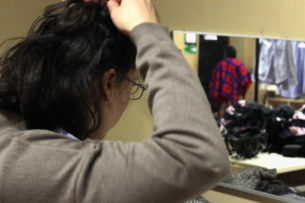 Llego al teatro de la Universidad Mayor para presenciar cómo se prepara el elenco de Bonobo, antes de la función de Tú Amarás. La compañía va por la segunda temporada de esta obra que agotó sus entradas en abril, cuando se presentó en el Centro GAM, y que ahora es parte del ciclo Teatro HOY hasta el 7 de julio. Está frío, pero en el teatro hay estufas que hacen todo lo posible por mantener el ambiente agradable. Me recibe la dramaturga Andreina Olivarí, quien alista todo para esta función.