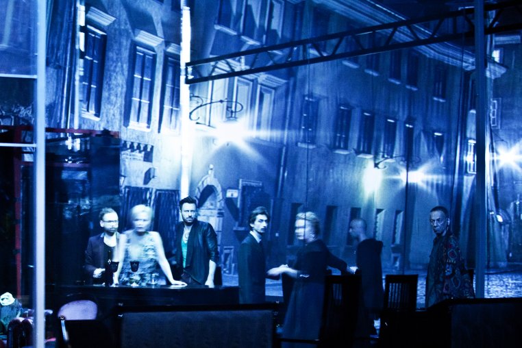Entre los asistentes a la reunión hay desde escritores malditos hasta un actor del Teatro Nacional a quien deben esperar para comenzar la cena en un largo y conversado preparativo. Estamos ante una escena muerta que revive a ratos gracias a la proyección de algunos cortos que sirven como antecedentes del pasado; el fracaso, el cansancio y el hastío es innegable tanto arriba como bajo el escenario. No es una obra fácil y queda claro en los primeros minutos cuando se instala un ritmo reposado. Estos personajes no tienen nada que hacer más que estar acá peleándose y recordando a su amiga muerta. No parecen preocupados por el futuro, solo les importa el presente y lo que se tenga que decir en esta reunión. La mayoría está en silencio mientras uno habla para luego ser contradicho por otro respecto de su visión del mundo, y así sucesivamente.