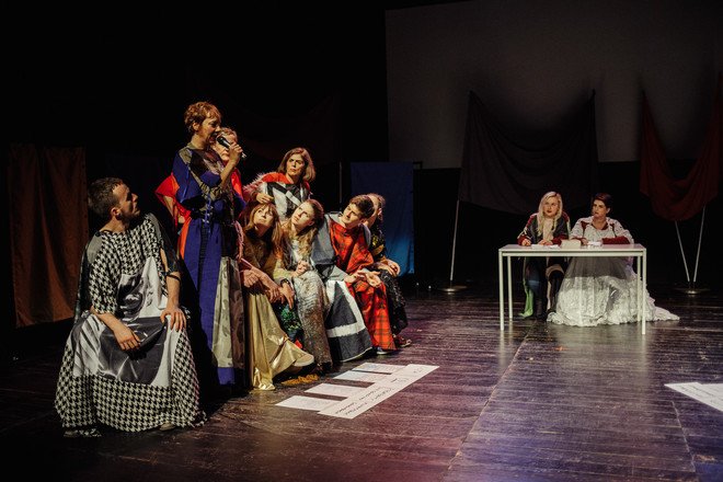 ¿Qué es eso de la propiedad, que separa a los que tienen de los que no tienen? ¿Quiénes ganan y quienes pierden con los procesos de privatización y gentrificación de los barrios? Es desde estas interrogantes que surge Oratorium montaje del reconocido colectivo SheShePop. La obra se caracteriza por adaptarse a la ciudad donde se realice. En ella interactúan el “coro de los delegados locales”, según la respectiva ciudad, y el “coro del público” que según la escena se divide, a su vez, en el coro de los que se definen tendencialmente por su condición social, por ejemplo, los que estudiaron una carrera en el campo de las humanidades, las que son madres, las que nacieron en la ex -RDA, los que habiendo vivido en la ex -RDA se declararon lutheranos o católicos, los que son propietarios etc. Los delegados locales por su parte, declaman citas, que leen desde una pantalla, y que provienen de pensadores y artistas (Brecht, Marx), o de políticos alemanes (Ulbricht, Merkel), en relación con la vivienda como una necesidad o un bien, y relatan su propia situación de vivienda en Leipzig, que hoy, producto de la especulación inmobiliaria comienza a dejar de ser el paraíso que fue. Entre estos delegados hay una escritora, una periodista, una heredera que a su vez trabaja en un voluntariado, un extranjero entre otros. Cada cual carga su propia historia sobre esta situación habitacional, historias disímiles que se encuentran sobre la escena.
