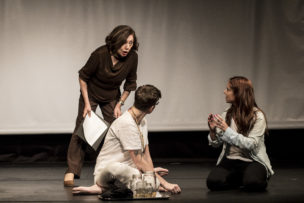 “Yo confieso que no sabía nada de Gabriela Mistral y lo digo con vergüenza, pero era sólo lo que me pasaron en el colegio, nunca profundicé. Por otro lado está Roberto, Maria Elena y Nicole, que todos conocen bien su trabajo, y muy entendidos en su obra, y ahí empieza este estudio y consiste en leer, documentarse e invitar gente. Hicimos charlas con gente que conoce mucho la historia y luego empezamos a escribir en base a improvisaciones, para luego comenzar a ver de qué teníamos ganas, cómo había pasado Gabriela por nosotras, y esta etapa de improvisaciones empieza a concluir cuando se inicia la escritura”, comenta Paula Sharim.