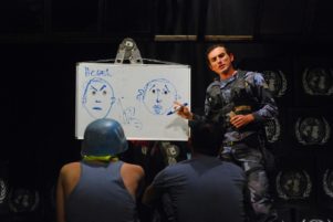 Llegó el esperado teatrorama semanal, ya se va agosto y te recomendamos tres montajes para cerrar la cartelera del mes. El clásico Anfiteatro Bellas Artes nos trae Brams, o la komedia de los herrores, un obra sobre un montaje teatral que está a punto de desarmarse. Sidarte presenta Casco Azul, una obra sobre una guerra en Haití y tres cascos azules de la ONU se encuentran sitiados. Finalmente la compañía con 65 años de historia, Ateva, presenta Ella y Ella, un montaje que invita al público a participar de un ejercicio de memoria y desmemoria: dos caras de una misma moneda con que intentamos fijar el precio de nuestra historia individual y colectiva.