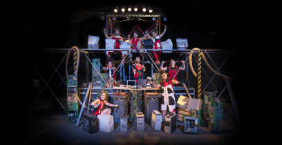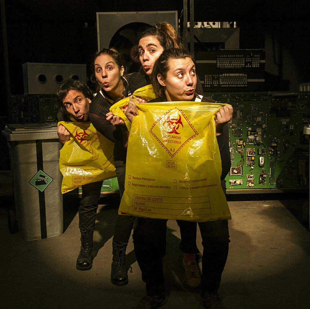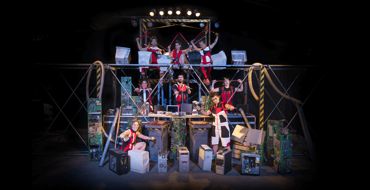 Este espectáculo familiar combina percusión con objetos, humor, movimiento, una mágica puesta en escena y la energía de los actores, para que reflexionemos acerca del creciente consumo de aparatos tecnológicos y conozcamos la regla de las tres R: Reducir, Reutilizar y Reciclar.