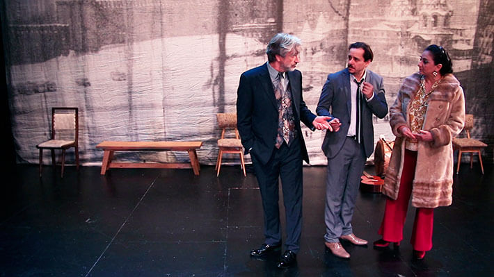 Pero nada es tan fácil. El discurso heroico, egocéntrico y megalómano siente que lo traiciona a El Amo y sentimos la lucha entre el personaje y el actor que quiere zafarse de este rol denigrante. Las delirantes propuestas del ricachón se cruzan con la irritación del actor y la obra se va convirtiendo en un conflicto de vida o muerte entre el personaje y la persona del intérprete.