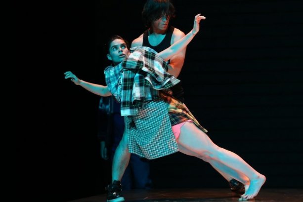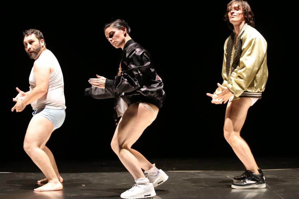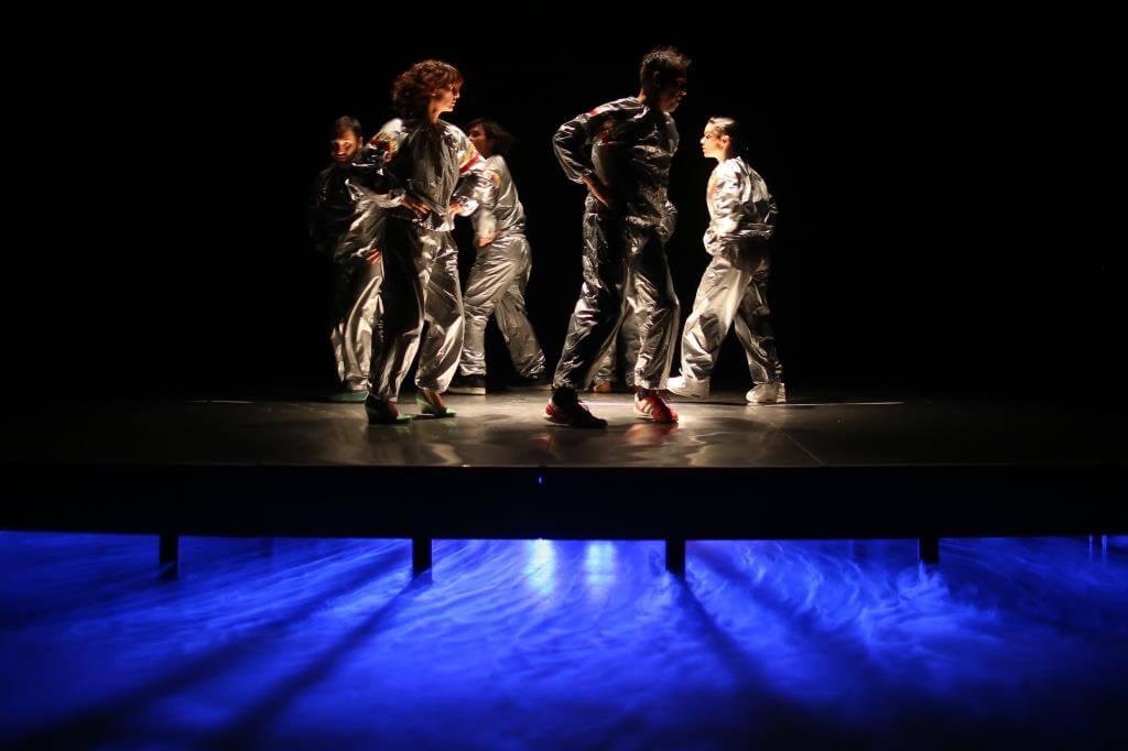 Oropel indaga en el cuerpo entre realidad y apariencia y se sitúa sobre una amplia plataforma de acero que simula una balsa que por momentos parece flotar. “Cuando visualizaba el montaje, visualizaba imágenes y relaciones, no gente bailando, por eso pensé en personas, no en bailarines”, cuenta la directora. Así, en el elenco hay intérpretes que no provienen del mundo de la danza, como el actor Jonathan Inostroza y el actor y director Rodrigo Pérez.
