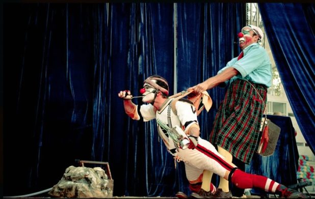 La compañía nació a mediados de los años 90, a raíz de los encuentros que tenían sus fundadores Rodrigo Rojas, Eduardo Moya, Sergio Pineda y Martín Erazo en el Parque Forestal de Santiago. De ese lugar nacieron variadas propuestas artísticas vinculadas al arte callejero, entre ellas A sangre e´ pato (1996) y El húsar de la muerte (2000). Tras el éxito de esta última, que les permitió viajar al extranjero, la compañía terminó por consolidar su estética y sus proyecciones a futuro.