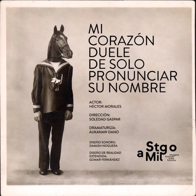 Mi corazón duele de solo pronunciar su nombre se constituye como una obra de teatro con actores sin cuerpo y sin espacio definitivo. Hay un tránsito entre Tomé y otra ciudad vacía por la pandemia; solo se escucha una voz –un personaje transespecie que narra sus desventuras en el pasado y durante el confinamiento– y se ven algunas imágenes proyectadas sobre el cemento, en edificios o calles; un recorrido sonoro donde escuchamos el mensaje de audio de alguien conversando con Ana, a la que nunca vemos ni escuchamos. Una obra contemporánea que habla de la periferia, del amor, del arte, del abuso, y también de la ternura de un ser que parece no comprender del todo a la humanidad. Un texto duro e implacable, representado con humor y sensibilidad por Héctor Morales. Un ejercicio por hacer visibles a los invisibles.